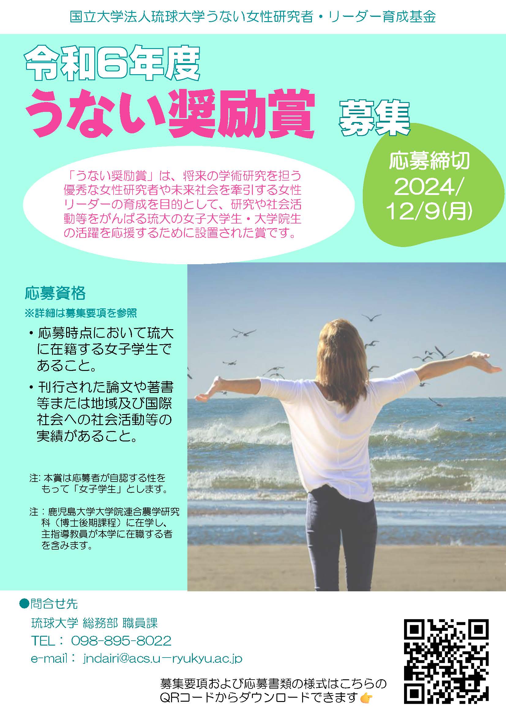 ・応募時点において、本学に在籍する女子学生であること。(過去に本賞を授与されたものは除く)